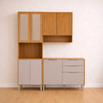 Cozinha Selena - 3 Peças - Paneleiro, Aéreo 80 e Balcão 120 - Cinamomo com Off-White